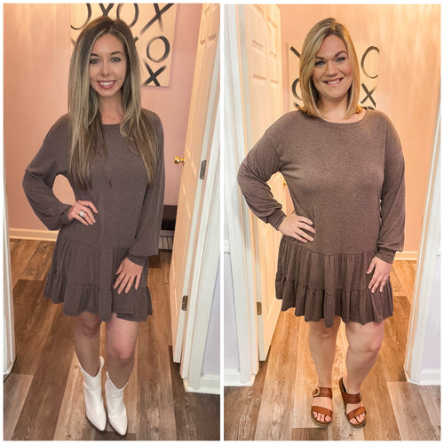 Brown Babydoll Tiered Ruffle Dress (Sizes: S-3XL)