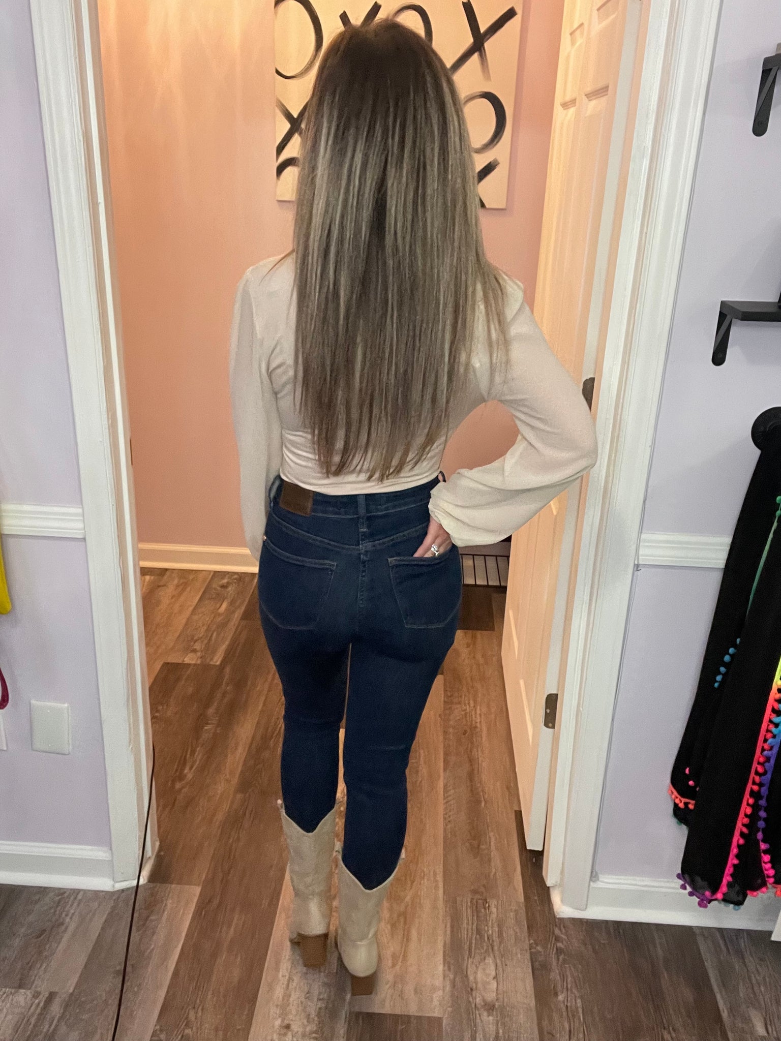 BUTTERY SOFT! Feel sexy and sophisticated in this cream sheer long sleeve cowl neck bodysuit. Wear to work, out with friends, on a date, etc! Good amount of stretch. Stretchy wrist bands. True to size.