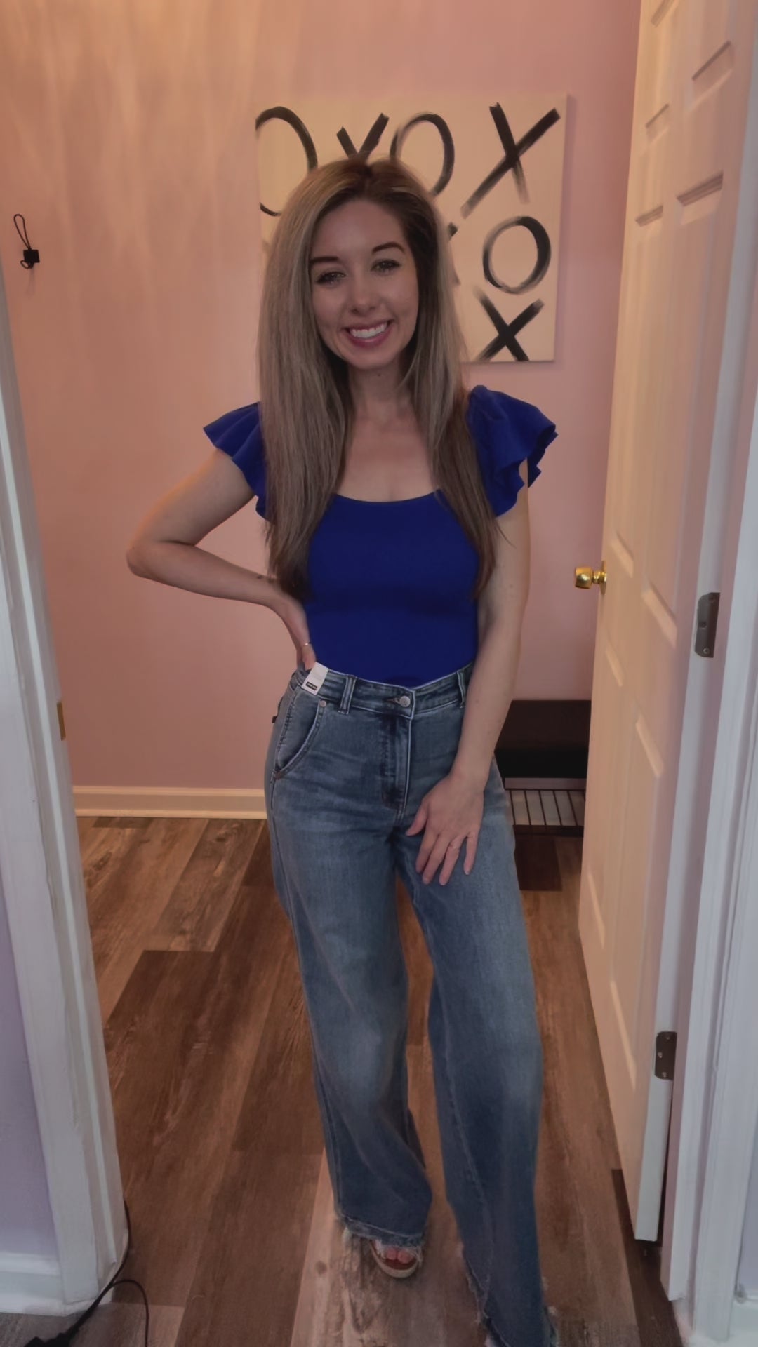 These retro wide JUDY BLUE high waist jeans are a MUST! Good amount of stretch. Very comfortable. Functional pockets in the front and back. Slightly frayed at the bottom and on back pockets.